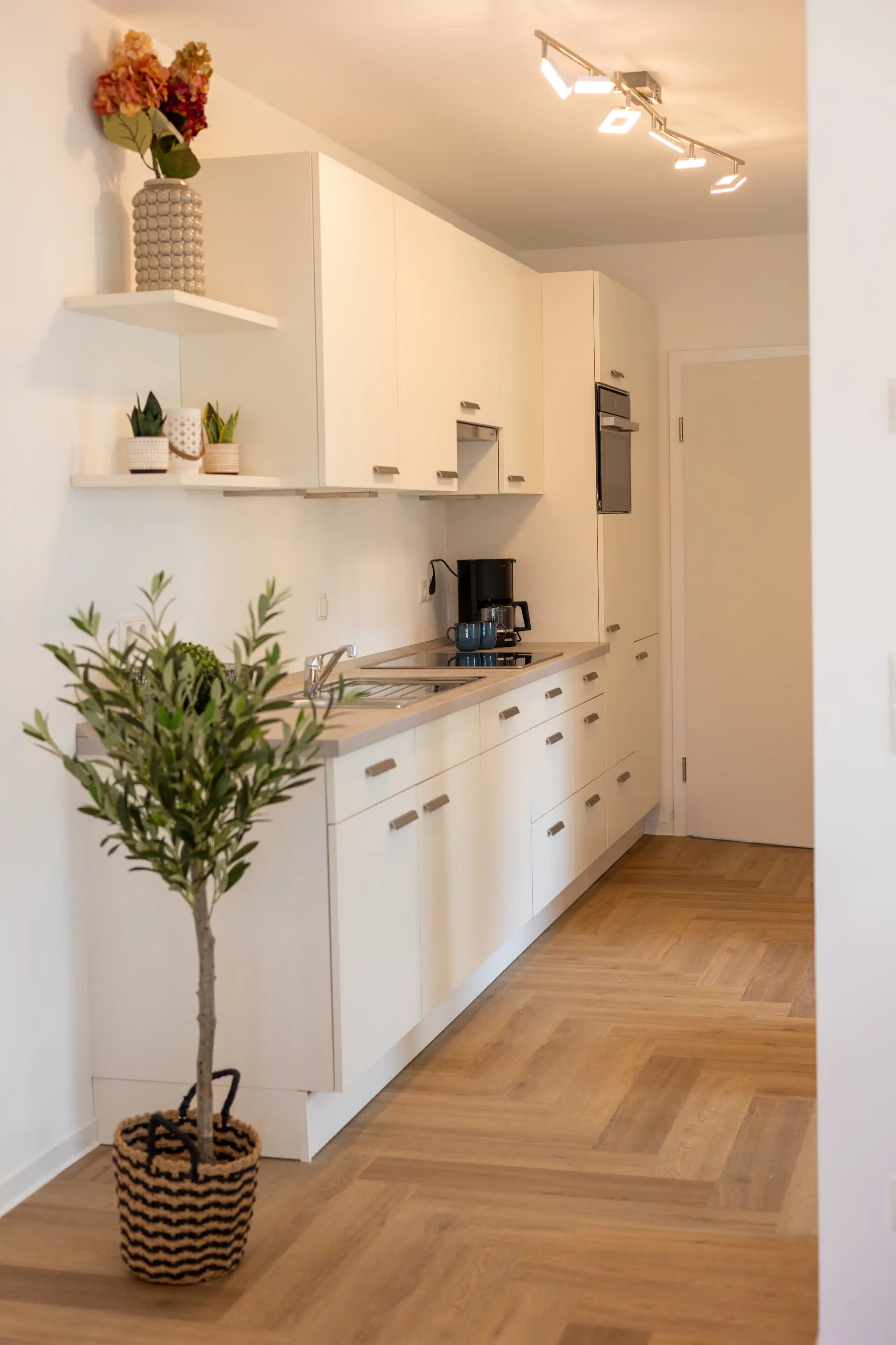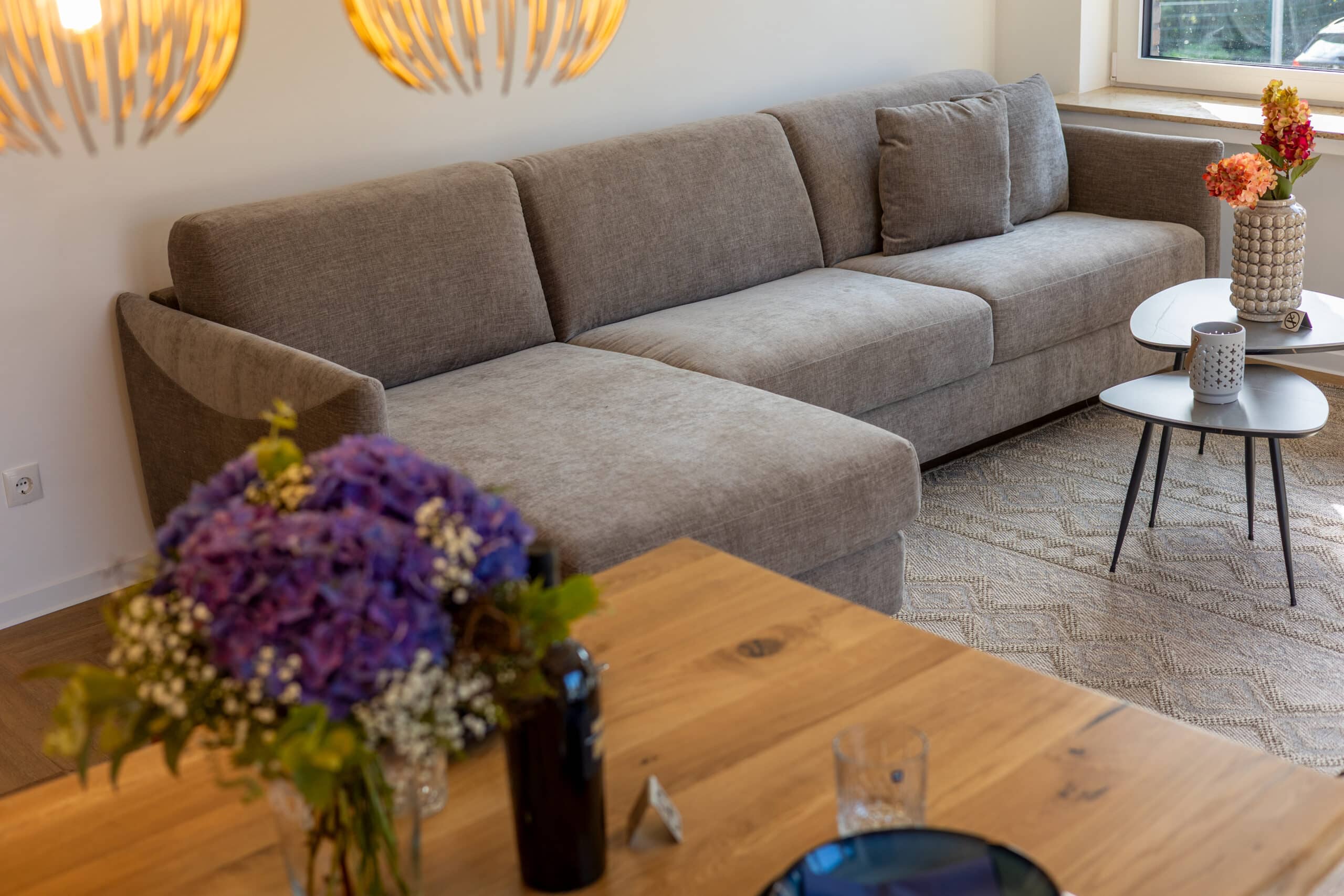 Unsere Wohnung 4 kombiniert durchdachten Komfort mit einer gemütlichen Atmosphäre – ideal für Paare oder kleine Familien. Auf rund 49 m² erwartet Sie eine stilvoll eingerichtete Unterkunft mit einem separaten Schlafzimmer und einem großzügigen Wohn- und Essbereich, der viel Raum für gemeinsame Zeit bietet. Die voll ausgestattete Küche fügt sich offen in den Wohnbereich ein und lädt zum Kochen und Genießen ein.